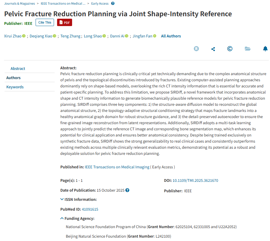 91自拍 杨健教授、王涌天教授课题组在骨折复位手术智能规划方面取得新突...