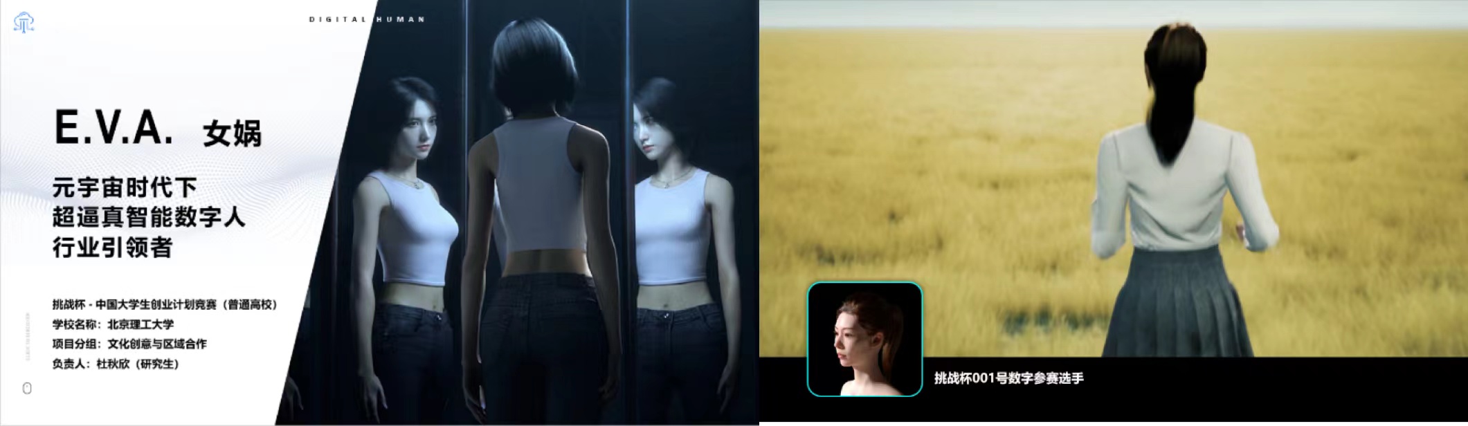 “EVA——元宇宙时代下超逼真智能数字人行业引领者”作为参赛项目,经过前期多轮角逐,最终团队成员杜秋欣同学在终审答辩中表现突出,荣获全国金奖!