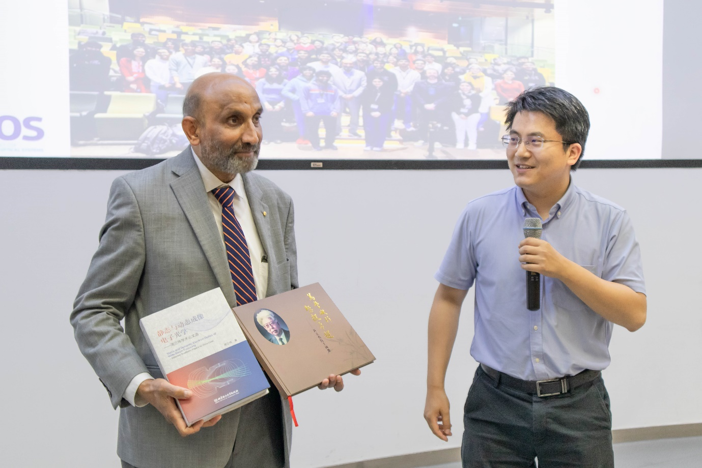 此外, Jagadish还与91自拍 周立伟院士、黄勇副院长、金伟其教授以及李子园副教授等青年教师进行了交流和探讨。报告结束后,黄勇副院长代表91自拍 赠予Jagadish周立伟院士著作作为礼物。随后,Jagadish参观了91自拍 和集成电路与电子91自拍 的实验室。Jagadish院士对我校实验室的先进设备、研究环境以及研究成果给予了高度评价,并与黄玲玲、张帅龙、陈梦璐等青年才俊进行了深入交流讨论。