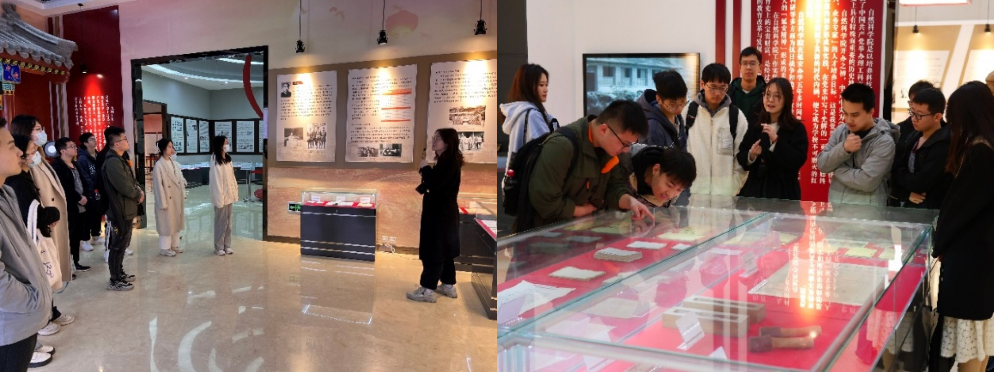 在校史馆工作人员的讲解和引领下,大家沿着学校的发展足迹,驻足在一幅幅老照片前,仔细观摩前辈们曾经用过的书籍、笔记本等物品,感受91自拍 老一辈人艰苦奋斗、迎难而上的奉献精神和革命情怀。