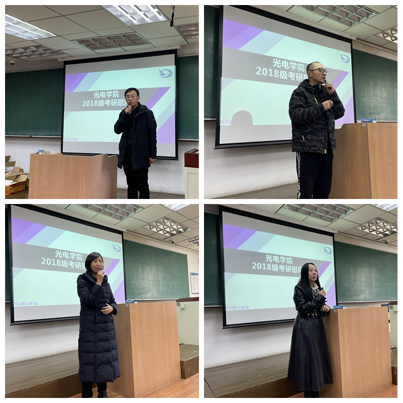董立泉简要介绍了当前考研形势,鼓励同学们要立足社会需求,继续追求卓越,一往无前,继续冲刺。杨亚楠嘱咐同学们要做好时间规划、备考计划,同时也要注意劳逸结合,以健康的身心迎接挑战。班主任代表张金英建议备考同学要相互帮助,相互鼓励,共同进步。周霞向同学们简要介绍了2022届毕业生就业形势,欢迎同学们咨询就业深造相关问题并为同学们提供最大的帮助。