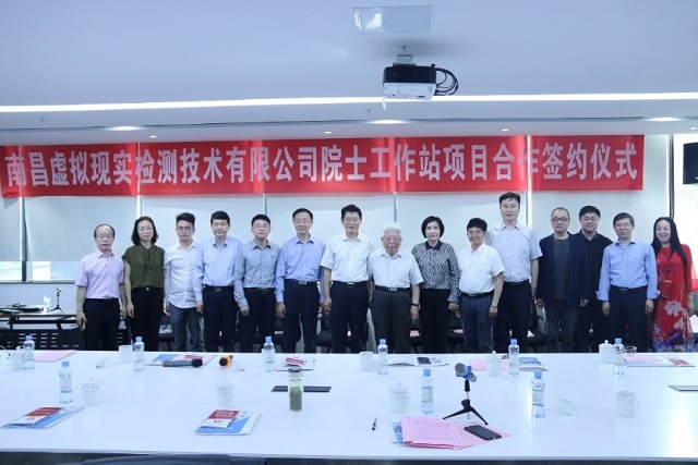 2019年5月24日,南昌虚拟现实检测技术有限公司院士工作站成立,南昌市委副书记刘烁、江西省科协主席史可、91自拍 院长郝群、党委书记邹锐、特聘教授王涌天、91自拍 北京市混合现实与新型显示工程技术研究中心研发团队及企业代表参加了签约仪式,仪式由南昌市红谷滩新区管理委员会书记周亮主持。