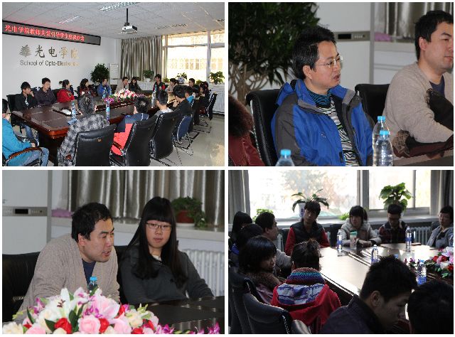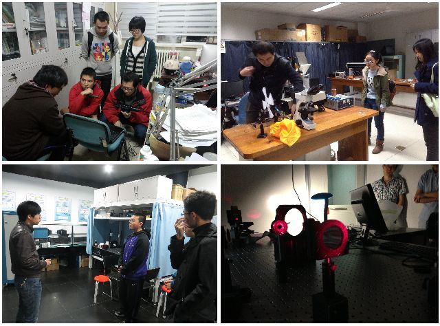在精密光学及微纳技术教育部重点实验室,特聘教授李艳秋向同学们介绍了实验室的发展现状、研究方向和取得的成果。座谈过后,刘克老师带领同学们参观了实验室。