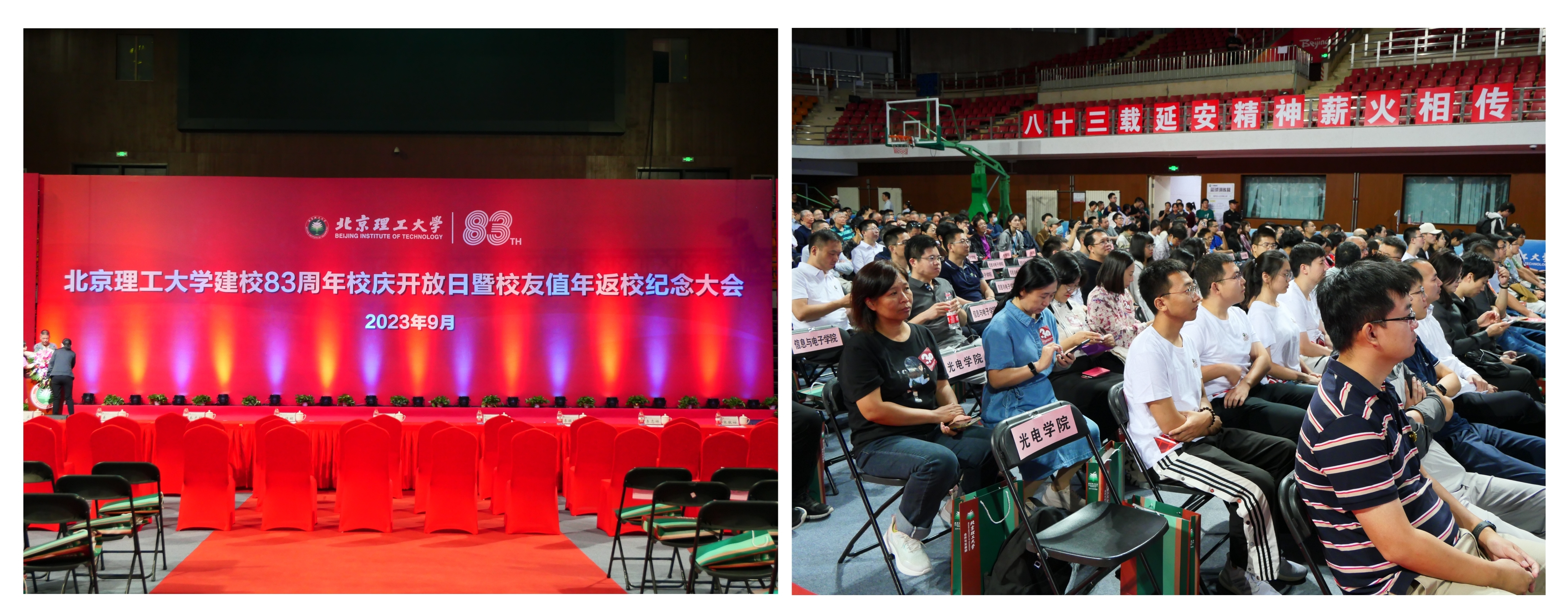 9月23日上午8:30,学校建校83周年校庆开放日暨校友值年返校纪念大会在中关村校区体育馆隆重召开。会上回顾了母校几十年来的发展历程,校友们无不感慨着岁月的流逝以及学校近年来快速的发展,发自内心地感受到了身为北理工人的骄傲与自豪。