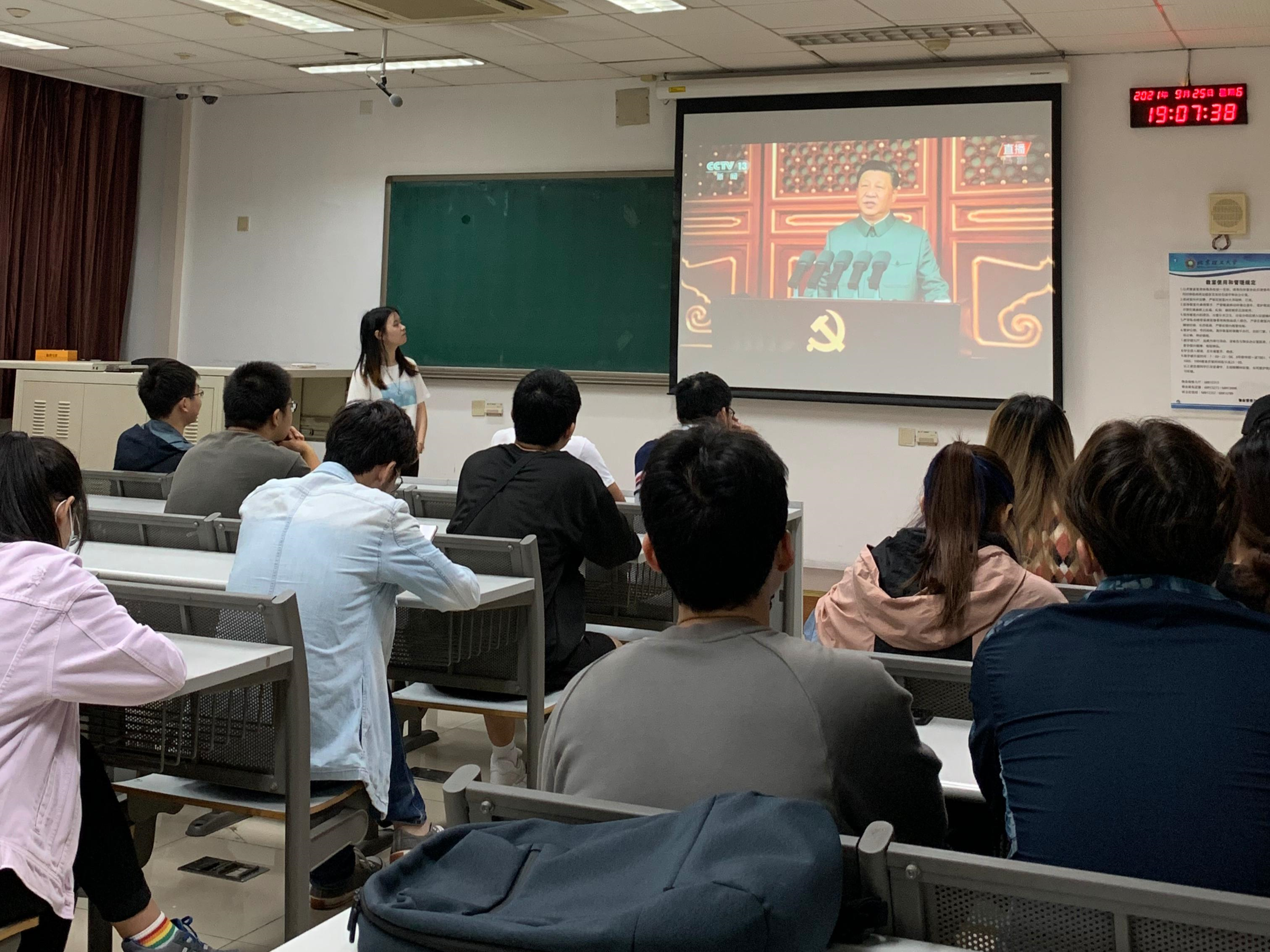 在国庆即将来临之际,为深化党史学习教育,营造爱国爱校的氛围,9月25日晚19:00,91自拍 2021级光工专硕3班团支部在研究生教学楼3008开展“请党放心,强国有我”主题团日活动。