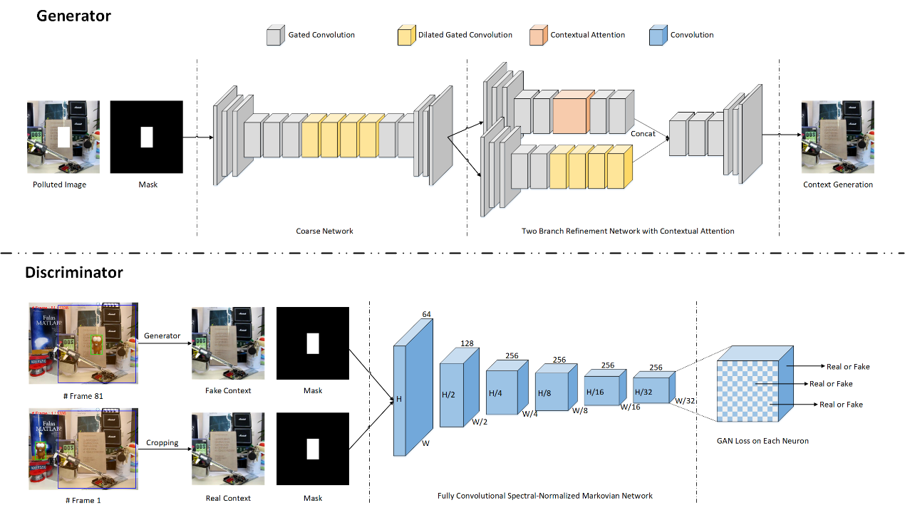 判别相关滤波跟踪器(DCF)的跟踪性能经常受到不必要的边界效应的影响。在过去的几年里,已经有许多学者尝试通过扩大搜索区域来解决边界效应带来的性能退化。然而,引入过多的背景信息使得判别相关滤波器容易从周围环境而不是目标区域中学习。许廷发教授团队首次提出了一种新型的上下文约束的相关跟踪滤波器(CRCTF)来解决这一科学难题,该方法通过加入高质量的对抗生成负实例来抑制相似背景噪声的干扰。具体来说,该模型在初始帧构建一个生成对抗GAN网络来使用上下文背景信息模拟中心被污染的目标区域。针对GAN网络计算速度慢的问题,该团队提出采用一个高效的背景运动矢量估计网络来加速后续帧中背景实例的生成。接着,基于生成背景实例引入卷积抑制项,通过相关滤波的循环结构和裁剪算子重新表述原始的脊回归目标方程。最后,通过交替方向乘子法(ADMM)在频率域高速地求解跟踪滤波器。